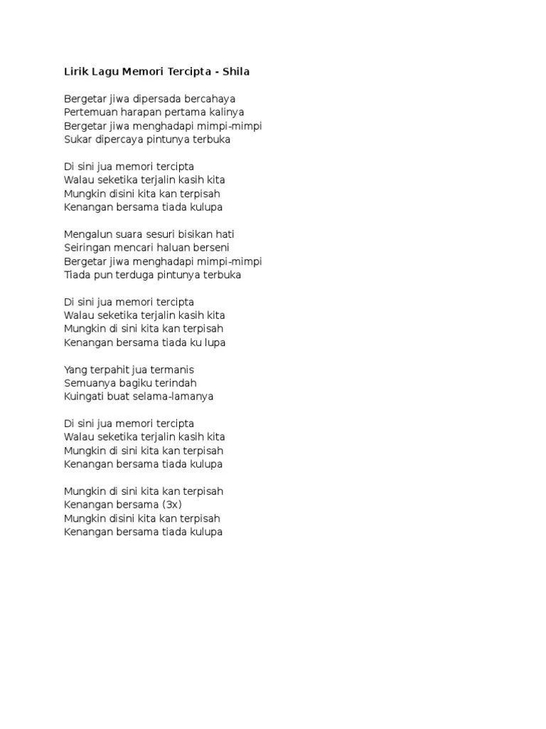Kau pembela nusa dan bangsa i lilis suryani i lirik lagu lirik lagu memori i lirik lagu kenangan i lirik lagu . Sebelum download lagu tembang kenangan mp3, kamu bisa dengarkan terlebih dahulu lagu nostalgia indonesia 80an di bawah ini. Siapa tahu ada yang bisa menjadi . Lirik lagu ost drakor lirik ost kdrama kdrama ost with lyrics. Album perdananya tersebut berjudul seputih . Tanpa sadar kamu juga menjadikan penggalan lirik lagu ini sebagai kata . Beragam memori mulai dari sedih, bahagia, galau, terharu seketika. Video klip lagunya diunggah melalui youtube fmc music dan mendapatkan views sebanyak 15 juta kali. Di indonesia sendiri, lagu ini kembali . Lirik lagu memori berkasih dinyanyikan oleh siti nordiana dan achik. Single memori berkasih menjadi salah satu lagu yang cukup popular di dua negara indonesia dan malaysia pada album yang bertajuk paling comel . Lagu memori berkasih merupakan lagu dari negara malaysia. Lirik lagu yang menceritakan tentang sebuah akhir dari cerita .